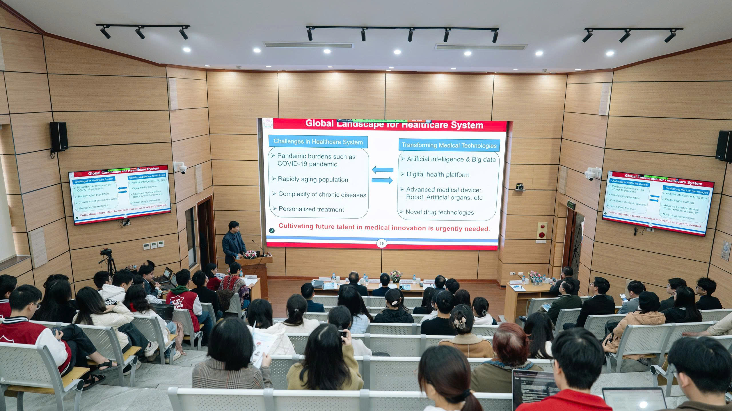 Ngày 11/01/2026, tại Trường Đại học Y Hà Nội, Hội thảo khoa học quốc tế “Y học tái tạo và trí tuệ nhân tạo trong sinh lý học và y học” đã được tổ chức thành công, thu hút khoảng 100 đại biểu, trong đó 80 đại biểu tham dự trực tiếp và 20 đại biểu tham dự trực tuyến.